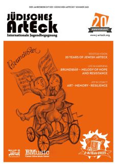 Die Broschüre zum diesjährigen Projekt der J-Arteck Jugendbildungsstätte ist da. Brundibár - Melody of Hope and Resistance war der Fokus des 20. internationalen Kreativ-Summercamps, das mit einer fulminanten Performance zur Kinderoper Brundibár am 18. August seinen Abschluss fand. Inspiriert zum Thema hatte die ukrainische und hebräische Ausgabe des Brundibár-Kinderbuches und unser Brundibár-Projekt im Geiste der Solidarität. Das Buch bildete die Brücke zu den israelischen und ukrainischen Teilnehmenden, die alle von uns ein Buch erhielten.