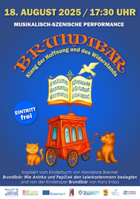 Unsere jungen Gäste erleben die wundersamen Abenteuer von Aninka und Pepíček, die für ihre kranke Mutter Milch besorgen wollen, auf den Markt eilen, aber vom Milchverkäufer, weil sie kein Geld haben, keine Milch erhalten und schließlich vom bösen Leierkastenmann Brundibár vom Marktplatz verjagt werden… Was dann geschieht, als die Nacht hereinbricht und ein Spatz, eine Katze und ein Hund sich zu den Kindern gesellen und einen Plan aushecken, wie sie ihnen helfen können, ist wie ein Märchen. Am Ende haben Aninka und Pepíček gemeinsam mit den Tieren und den Kindern der Stadt Brundibár besiegt und den Bösewicht vom Marktplatz verjagt! Weil sie zusammengehalten haben! Weil Freundschaft, Gerechtigkeit und Solidarität die Quelle unserer Kraft ist.